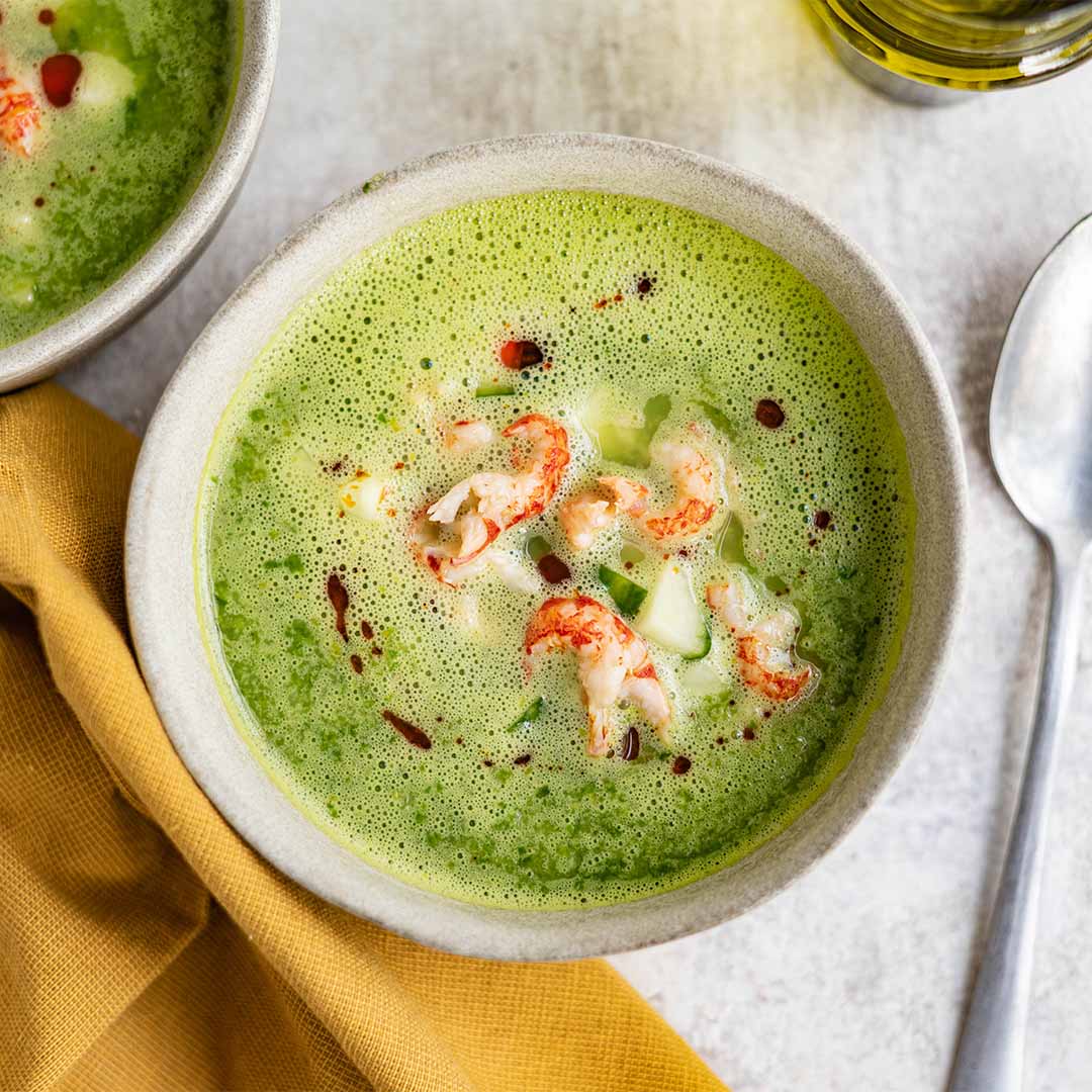 Komkommer-slasoep met rivierkreeftjes