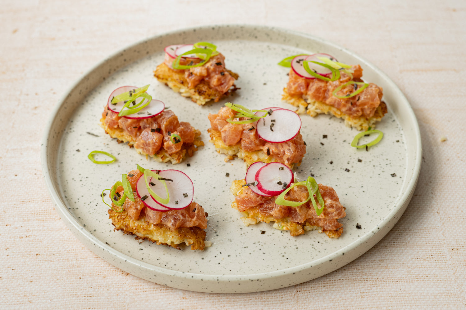 Krokante bloemkoolrijst-bites met pittige tonijn*